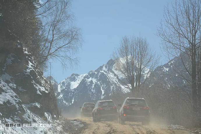 在从迪庆到亚丁的291县道中,有着将近80公里的非铺装路面。得益于驭胜较长的悬架行程以及优秀的最小离地间隙,使它能快速并较为舒适地通过深坑以及车辙路面,而且全程并未发生托底现象。但由于整体桥的悬挂结构,车辆对于碎石路面的滤震效果不明显。另外,整个非铺装路面都是由教练驾驶,经过和教练的交流,在车辆快速通过这种烂路过程中,方向盘会过滤掉大部分路感,从而避免了打手现象的发生。