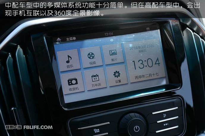 我们试驾的这款车型为中配版,虽然在中控区内出现了可触摸的多媒体显示屏,但功能十分简单。在这个多媒体系统里,您只能查看时间、听音乐、收音机、看视频以及照片。在高配车型中,则会出现车载互联系统、360度全景影像以及自动感应雨刮等。