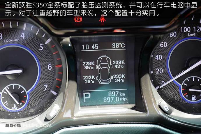 值得一提的是,全新驭胜S350的行车电脑中,不仅可以显示一些常规信息,而且还有胎压实时监测。这套监测系统,不仅可以实时查看轮胎压力以及温度。而且在胎压低于冷胎压25%或压力快速降低时,可立即报警。另外,博世的ESP 9.1系统也配备在了这款车型之中。