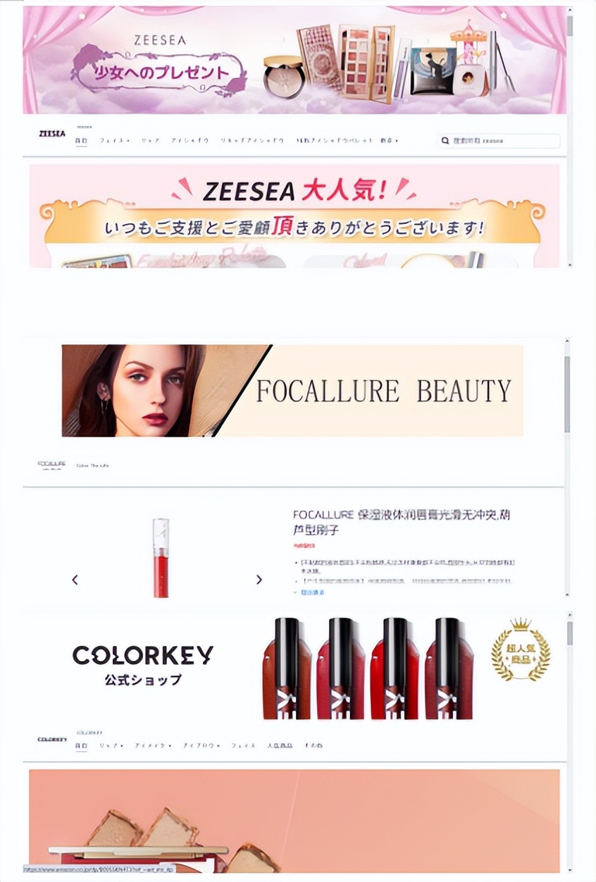 滋色、菲鹿儿、珂拉琪的日本亚马逊旗舰店页面
