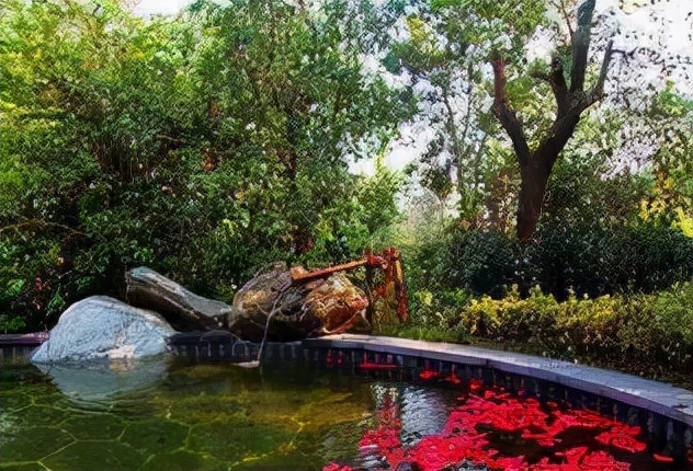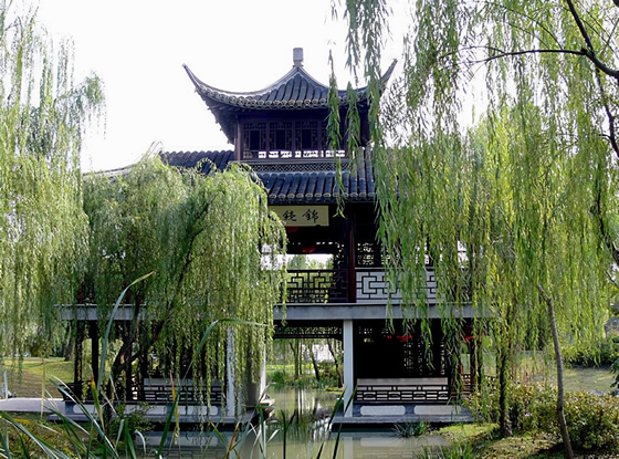 西园以水池居中,池中央便是水心亭了,这座水心亭是中国仅有的水中戏亭,专供园主人观赏戏曲、歌舞和纳凉赏景之用。《红楼梦》、《还珠格格》、《毕升》等一百多部影视剧把此处作为影视基地。