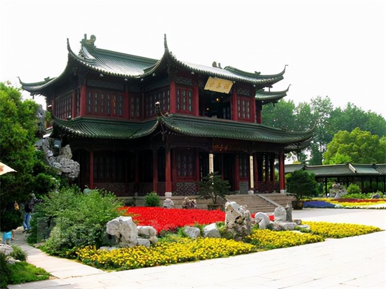 玉绣楼前面是一座面积为160平方米的“与归堂”,是目前扬州保存最大、最完整的一座楠木厅,此处为主人会客的地方。楠木厅正厅大门两侧,融合了西方建筑的手法,运用整块4平方米大、9毫米厚的玻璃,采光效果极好!