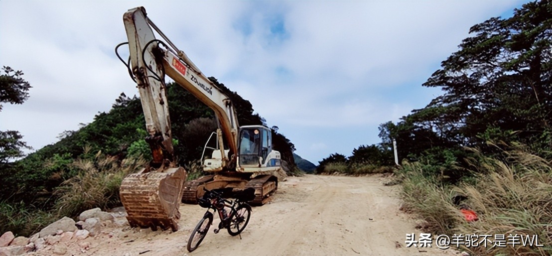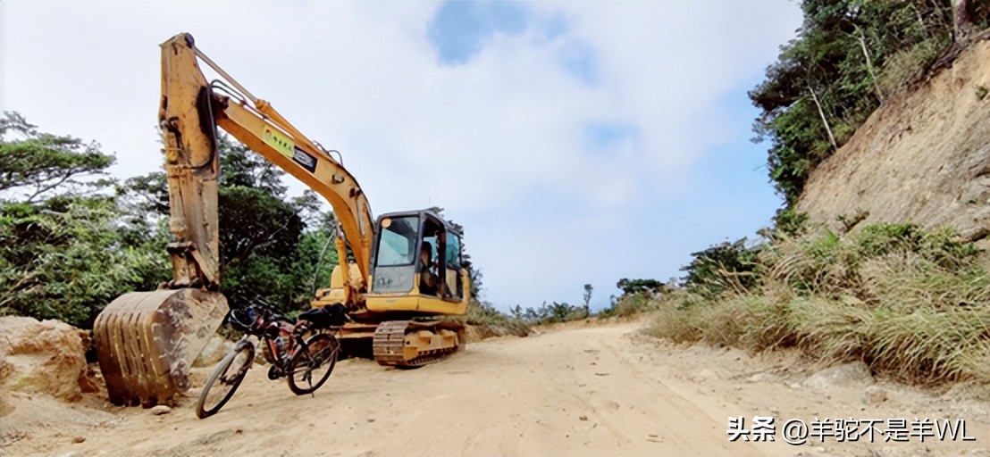 遇到两台挖掘机,这修路还得靠它倒腾。