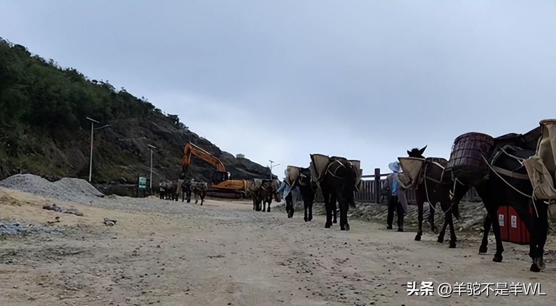 遇到好多匹马,这山顶上搬运东西,还是马匹好使。