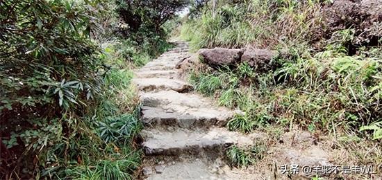 坐缆车上山的话,从索道平台徒步登顶,就是从左边登山道上这儿来的。