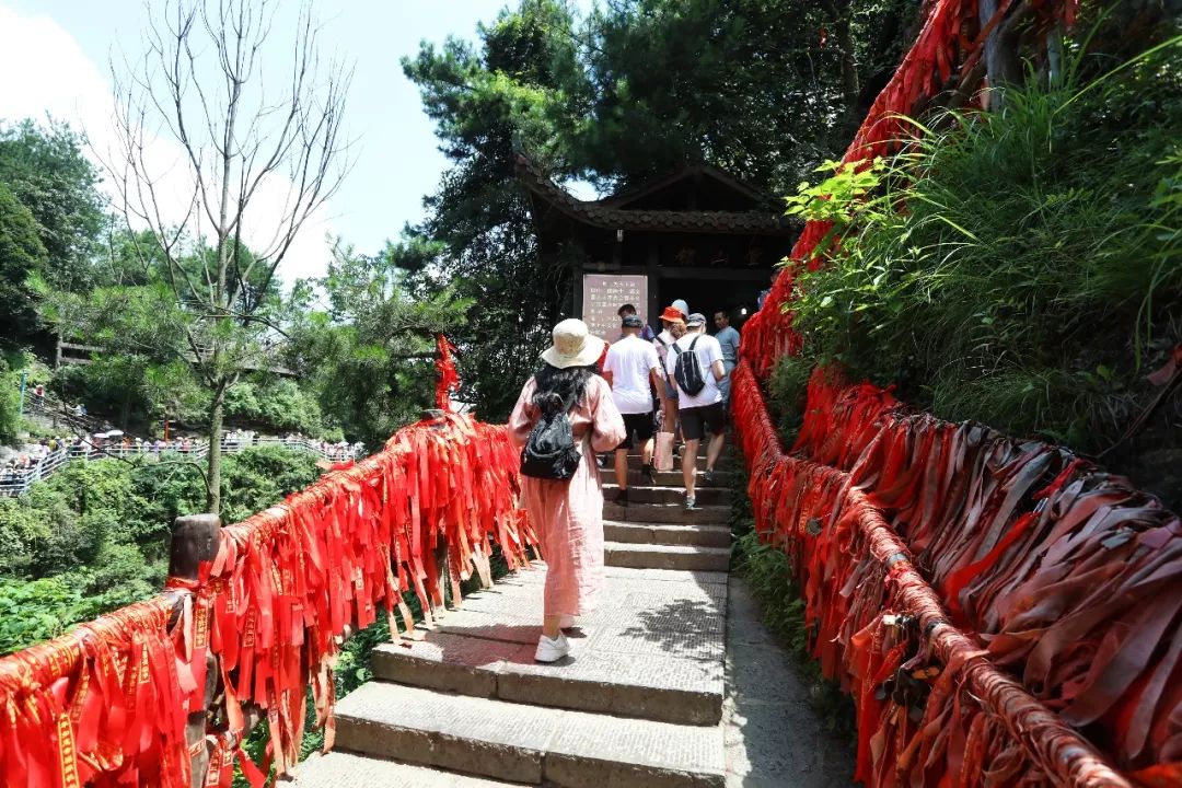 坐上百龙天梯,还没来得及反应过来,迅速升高,眨眼间便到了山顶。