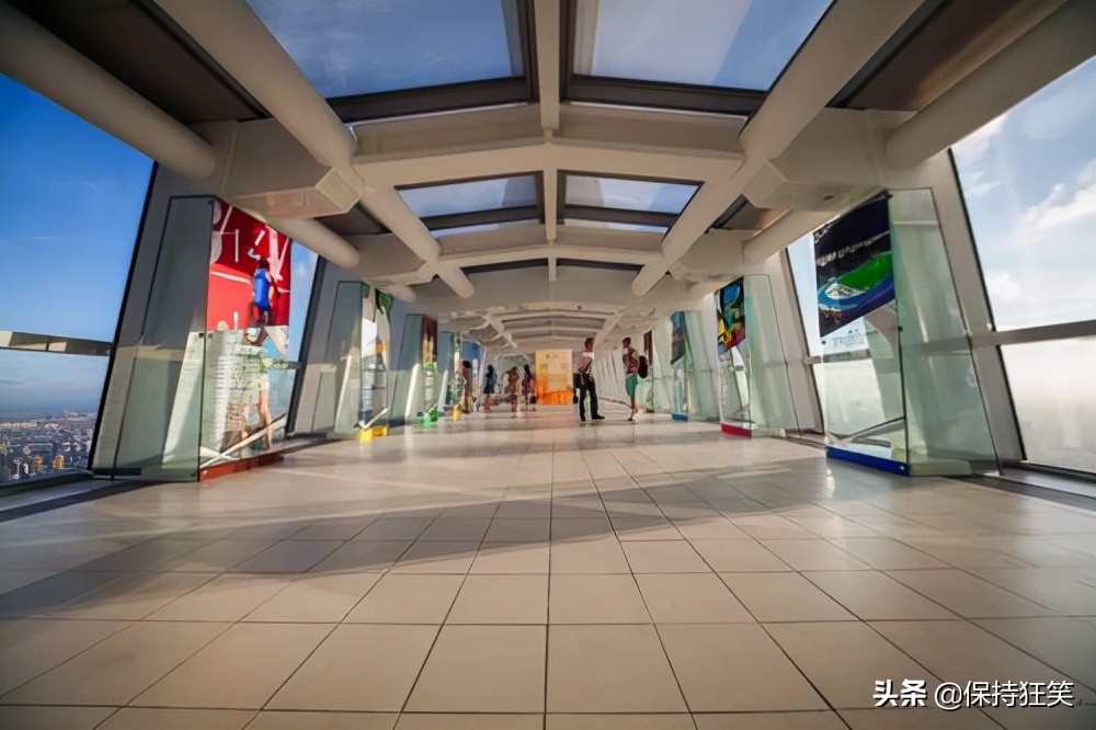 上海环球金融中心共100层,94-100层都为观光层,其中倒梯形底部为97层观光天桥,而倒梯形顶部为100层则设置了长约55米的贵宾观光天阁,高474米的观光天阁将是世界上最高的观景平台,让贵宾在宽阔的观光空间感受上海的城市魅力。此外,大楼94层还设置了面积700平方米、室内净高8米的观光大厅,满足普通观光的需要。白天可俯瞰浦江两岸景色,上海的历史和变化一目了然。入夜后放眼看去黄浦江上大小巨轮如星火般点缀着江面,夜上海的繁华和璀璨尽收眼底。