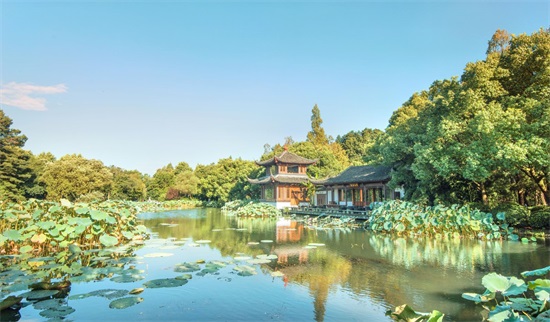 在西湖外湖西南部的小瀛洲岛及岛南局部水域,范围约7.67公顷,是杭州西湖标志性的景观。该景观以水中三塔、小瀛洲岛为核心观赏要素,以月夜里在岛上观赏月、塔、湖的相互映照、引发禅境思考和感悟为欣赏主题。