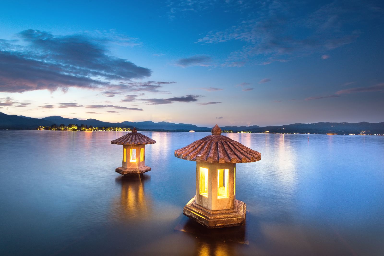 以往每到月夜,尤其是中秋,人们在塔中点上蜡烛,在塔身四周的圆形小洞上蒙上薄纸,光线便透过纸印在湖面上,和天上的月亮交相辉映,美不胜收。