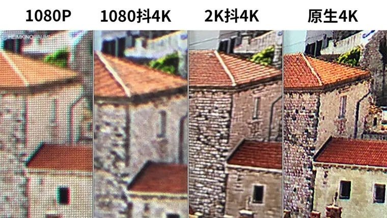 现在有些商家也会利用XPR高速抖动技术,拿0.33DMD的芯片模拟1080P画质,拿0.47DMD的芯片模拟4K画质。这就是为什么会有“抖1080P”、“抖4K”的说法。价格比起来那是真香本香了,至于画质嘛,各位自己看图分辨吧。