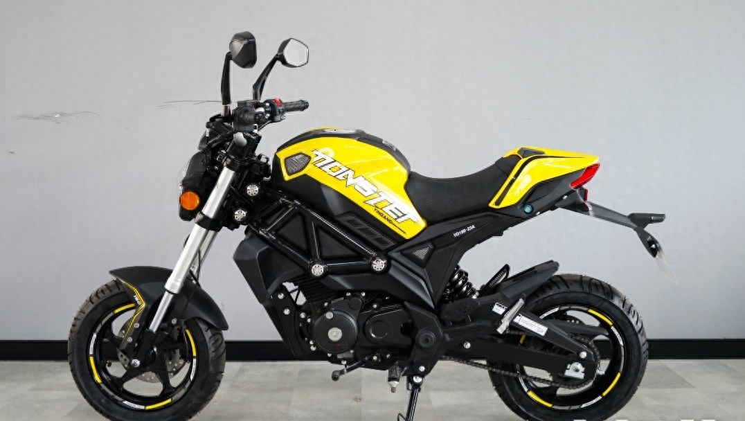 来自于钱江贝纳利的这款TNT125小暴龙也是万元级别以内的MINI款街车,由于这款车的体积与整车的重量都做到比较轻,仅管座高也达到750MM以上,所以在重量方面去评比这款小排量的MINI款摩托后,也是体现了它的整车偏向小型化的设计,也比较符合一些身材不够的摩友。