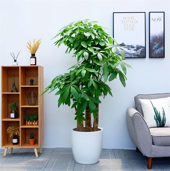 别看发财树能长得很高大,但是它的根系却不发达,吸收能力弱,所以栽种的时候,不要用过大的花盆,用稍小的花盆,放在散射光通风处,土壤四五成干浇一次水,多向它的叶片喷施水雾,一个月施一次复合肥就能长得很茂盛。