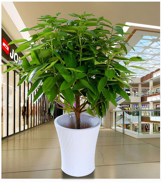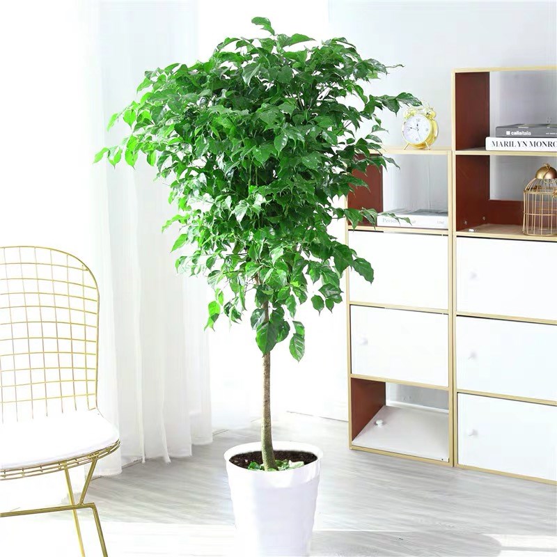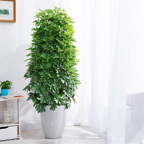 招财树的叶片是复式叶,一般是6个小叶组成一个复叶,形状就像是鸭掌或是鹅掌,也像一个个招财的小树,所以它被称为招财树,还有“鹅掌柴、鸭脚木”的别称,整个株型,枝叶密集,高档大气,且有“八方来财”的美好寓意,还有很强的净化能力,特别是对二手烟的尼古丁,净化效果最佳,特别适合家里有吸烟的人家养。