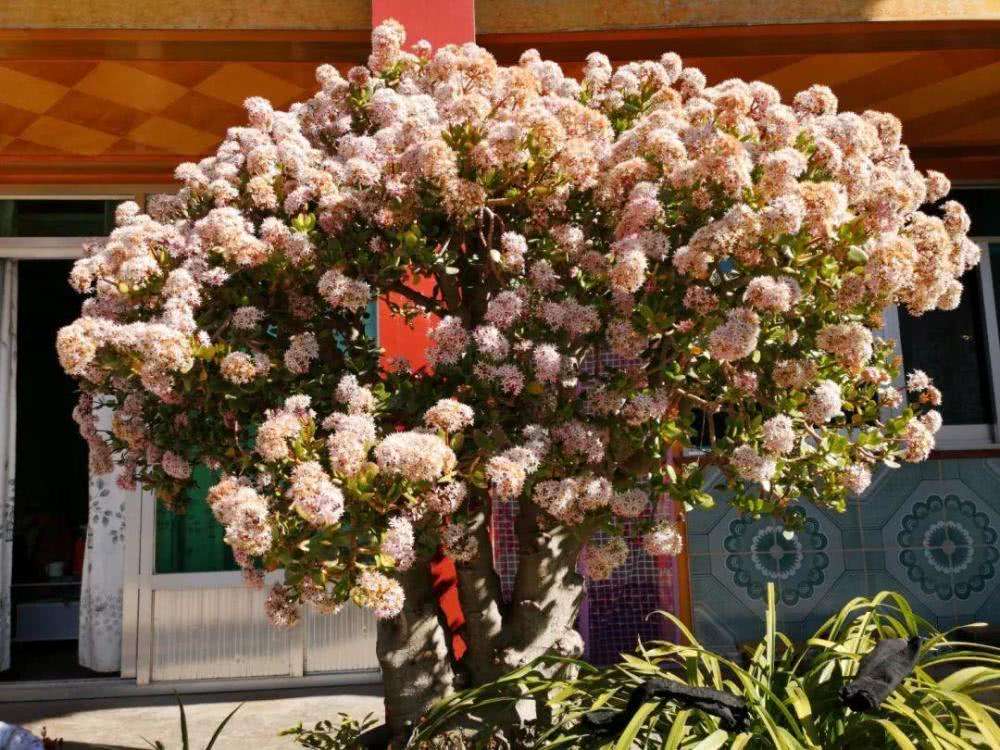 玉树寿命很长,云南一花友,在院子里养的玉树,已经成活二十多年,长得像一棵高大的树,年年夏秋时节,都能开满一树繁花,看起来清新淡雅致,高档独特,且玉树开花十分吉祥,有着“富贵荣华,吉祥华贵”的美好寓意。