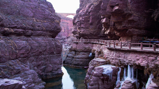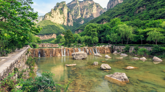 云台山景区以全国第三、世界第五的名次被联合国教科文组织命名为全球首批世界地质公园而在全国倍受关注。最不可思议的是,经过水不断冲刷,石头会慢慢变色,以至变成了红色。如一个个巨大的玛瑙一样或隐藏在林中,或呈现在碧水之中,红山如水,让人不由得多看几眼。