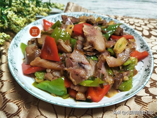 做法:1、买来的 猪头肉切片,青红椒洗净切三角块。
