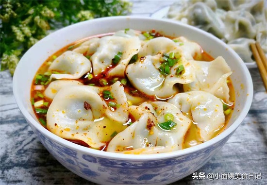 5、饺子全部包好,锅里水烧开后下入饺子,水开点凉水三次,控水捞出,做成酸汤水饺或者蘸料食用。