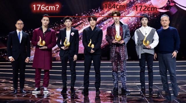 还有这张微博之夜的照片,里面已知蔡徐坤身高184cm,而华晨宇是172cm,然后对比一下张艺兴和华晨宇,两个人明明差不多,所以张艺兴的官方身高178cm,是真的有点奇怪了。