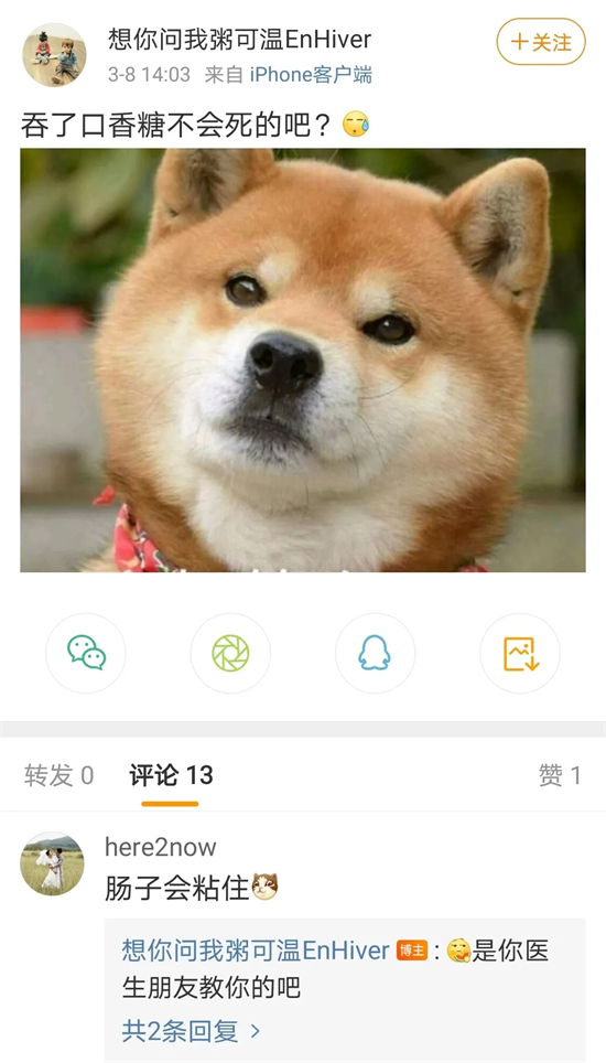 口香糖它粘啊!不怕黏住肠胃吗?