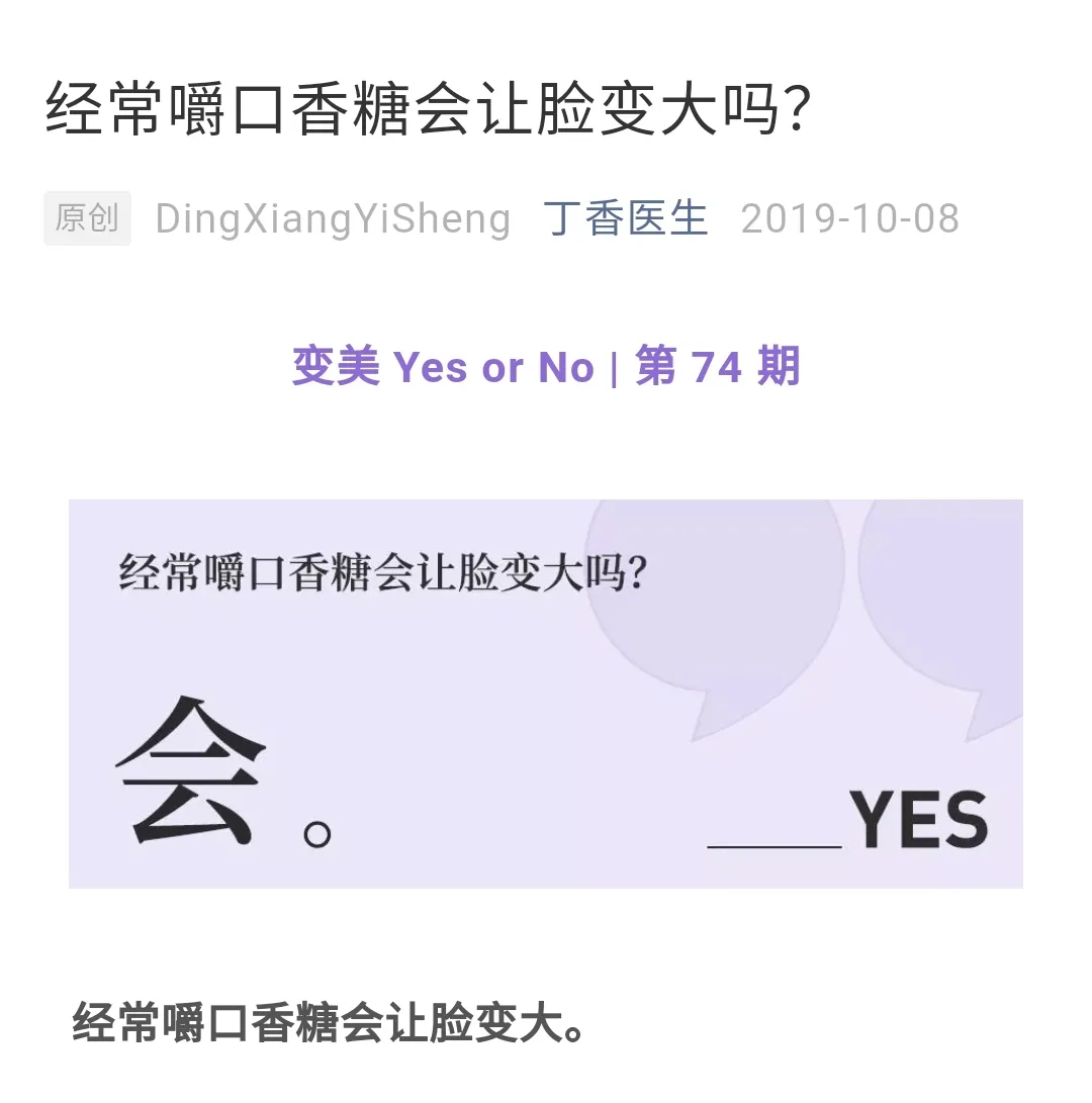 当然了,即使你不把口香糖吞下去,我也不太建议你经常嚼口香糖。