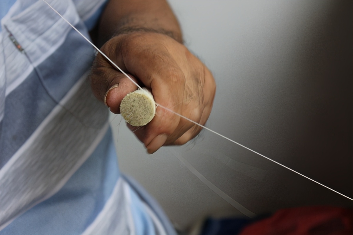 当把毛料选择出来之后,笔工还需要把松香融化,将湖笔的笔头根部固定,这道工序被称为是“结头”。这样的半成品支撑之后,还需要择笔,修剪掉无锋的笔毛。这些严格的一步步要求,是为了能够达到湖笔的高质量要求。