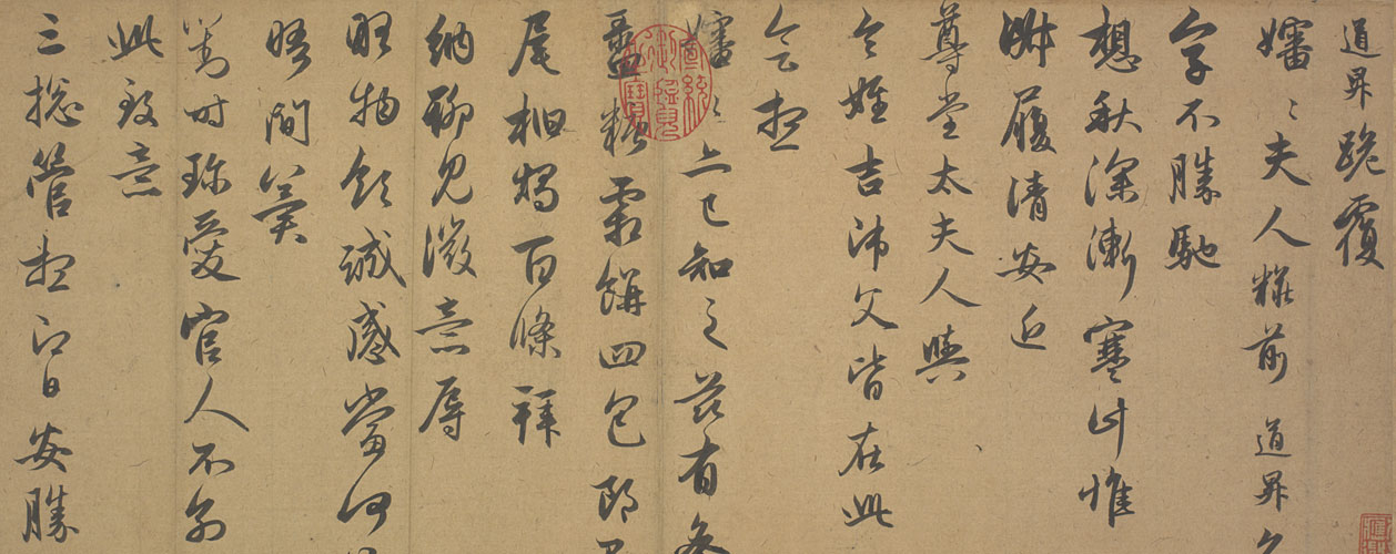 在北京故宫博物馆里,还收藏着夫妻俩的《秋深帖》。这是妻子管道升给婶婶问安的家信,是赵孟頫为妻子所写,从中可以看出赵孟頫的书法技术之高超。