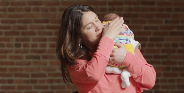 妈妈靠躺着(不要躺的太平),让宝宝趴在妈妈身上,脸部高过妈妈肩膀,大约这样抱15分钟就可以。