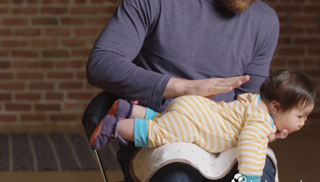 如果胃里有空气,就会随着妈妈手掌给予力量的震动,让宝宝把嗝打出来。
