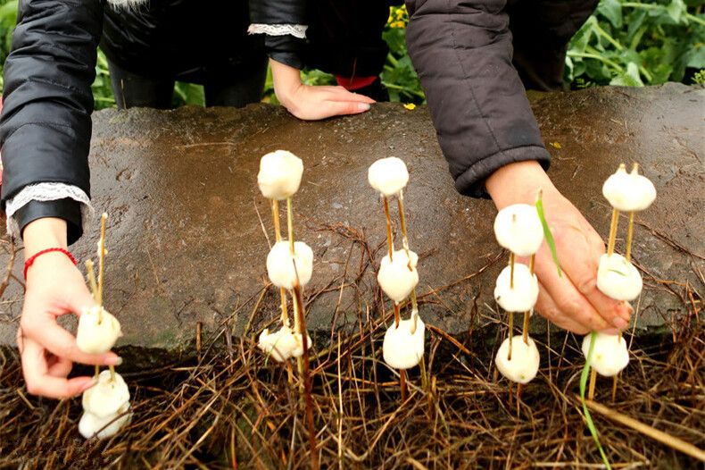 春分时节,在很多地方都有吃汤圆的习俗,自己家在包汤圆时包完带馅的汤圆后还要多包上十到二十个左右不带馅的汤圆。家中吃完带馅的汤圆后,将不带馅的汤圆煮好,用细竹扦串上汤圆插到屋外、田野地上,引雀子来吃,这一习俗名叫“粘雀子嘴”,是希望黏上了雀子的嘴后,这些雀子之后就不会再来破坏庄稼了。