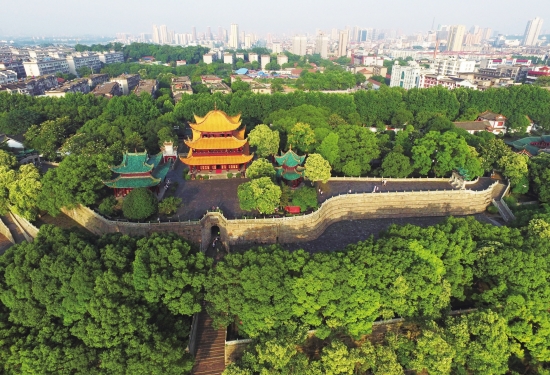 航拍洞庭湖畔的湖南岳阳楼。图/新华社