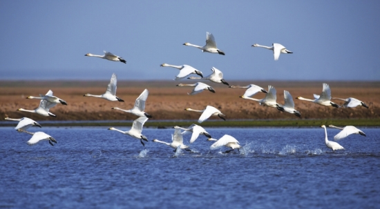 湖南东洞庭湖国家级自然保护区内拍摄 到的天鹅。图/新华社