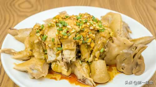 当然也可以配上自己喜欢的酱汁,准备大蒜几粒,拍散后切成蒜末,小葱几根,切成葱花放入盆中,盆中加入食盐1克,白糖少许提鲜,味精1克,生抽20克,葱油10克,香油5克搅拌均匀,把调好的酱汁均匀浇在鸡肉上面即可。