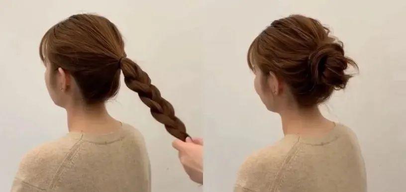 这是一款很适合后脑勺扁塌、细软发质的女生。结合简单的编发,手残党也能扎出电视剧女主角一样的丸子头,看完你就在知道为什么叫编织丸子头了!