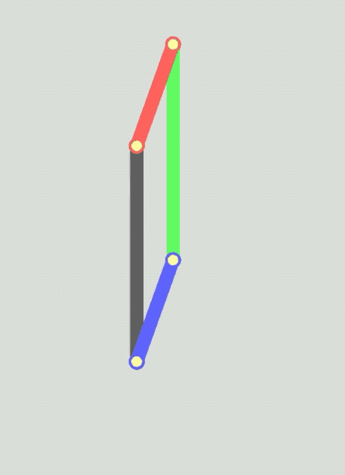注意看每一片百叶窗,是由三根细线串起来的,中间的叫控制绳,用于拉上拉下,到了我们这里讲闭合就不用管它了。两侧的两根叫做梯绳,其实是要组成交叠到一起的一整串平行四边形机构的,用人话来说就是…只要像下图这样拉动一边梯绳,就能带动整套叶片同时转同样的角度啦~以前那种会发出「哐且~哐且~哐且~」的老式火车,也是被这样的平行四边形结构联动在一起去转动整排整排轮子。