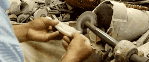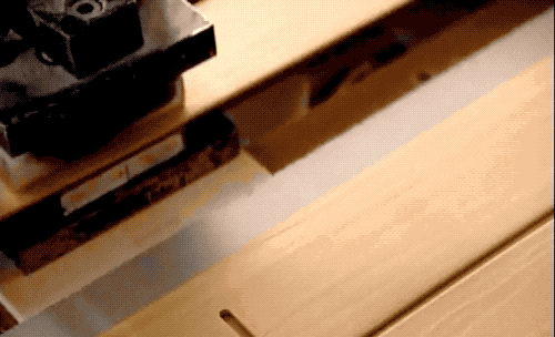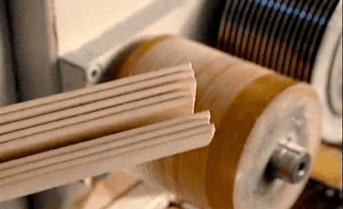 已经是一片片单独的木片出来了…仔细看上方的那个滚轮,这里其实是在做倒角,由于没找到合适的视频…我就用文字来叙述了…