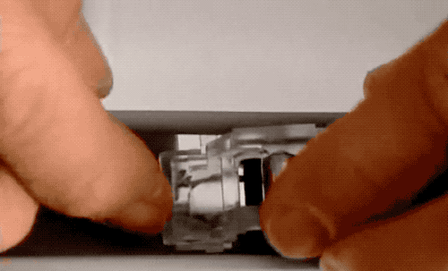首先就是在百叶窗最上部的安装各个小机关。下图就在安装的是我们上文说的摩擦辊和滚轮部分。
