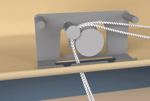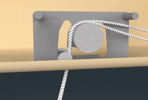 往内扯时,绳子首先会带动上方的小摩擦辊往下跑,这样就解锁了摩擦力夹住绳子的状态。摩擦辊和绳子的运动方向不同,就慢慢渐行渐远了。夹紧靠的也是摩擦力去带动,松开也是靠摩擦力去带动,简直是成也摩擦力,败也摩擦力…