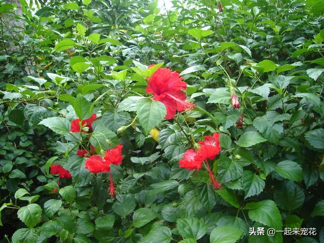 扶桑花又叫做朱槿,花色丰富,小编最喜欢的还是红色,非常喜庆好看。扶桑花耐晒又耐寒,作为一种藤本植物,长势旺盛,花开不断,需要有充足的养分,花朵就像是一个个小喇叭一般,真的是太可爱了。