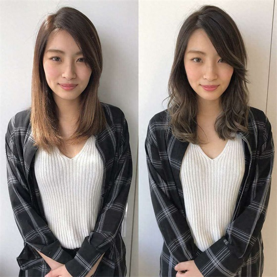 设计后的发型:发根采用摩根烫的方法增加颅顶高度,五官更有立体感,脸型也更好看。根据肤色选择适合的棕色发色,显白又洋气。发梢烫出自然的卷发,增加了发型的时尚感,前后对比就像换了个人似的,超养眼。
