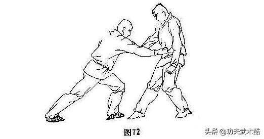 ③甲左手问收,右手再以正拳从左手下出手击打乙的关元穴。三打必中其一(图72)。