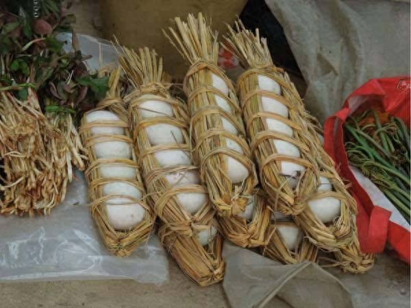 云南第一怪:鸡蛋用草串着卖。