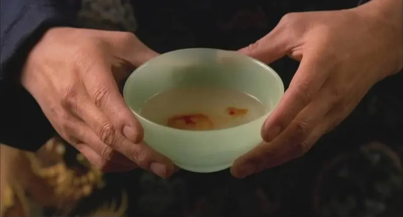 如果鲜血进入水中,没有散开,还如同一颗珠子一般,那就代表着还是处子。