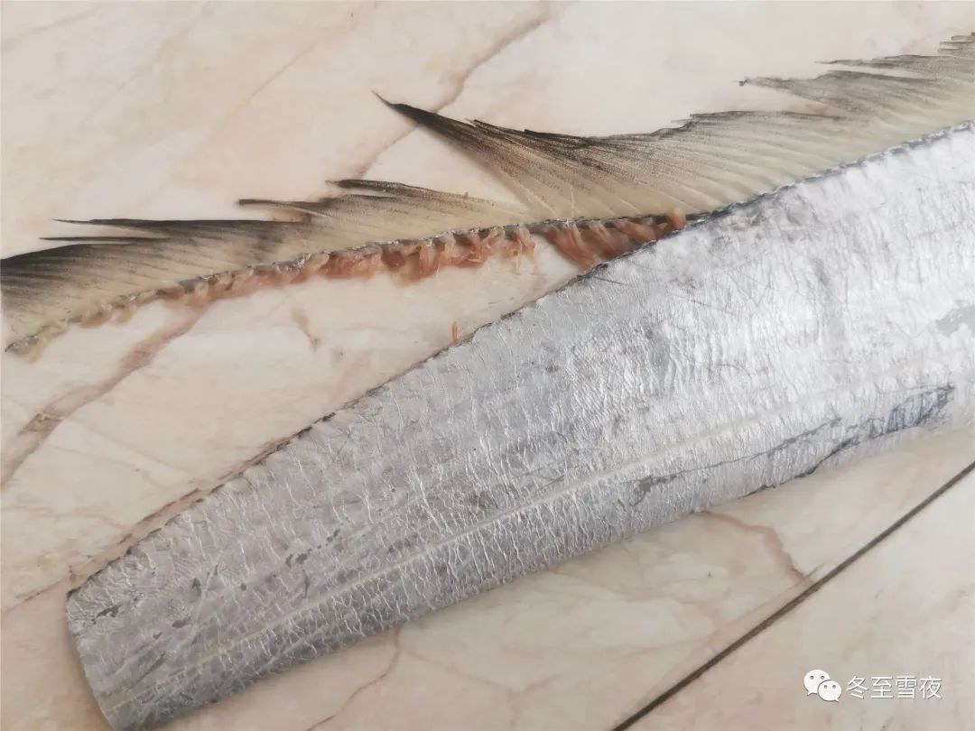 带鱼体表有一层银白色物质,很多人误以为是鱼鳞,在处理带鱼的时候会将其清洗掉,其实这种做法是错误的。这层“银粉”其实是一层由特殊脂肪形成的表皮,称为“银脂”,它是一种油脂脂肪,如果是新鲜带鱼,应该尽量保留,很有营养的,如果这层“银粉”很容易的被擦下来,也证明带鱼不太新鲜了,就不要保留了。