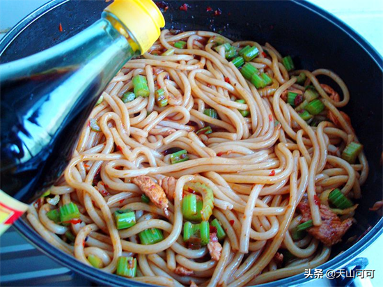 10、滴几滴香醋翻炒均匀即可出锅,香醋不能多加哟,就是出锅前提香气的,酱香味浓,劲道有口感好吃。根根入味真攒劲!
