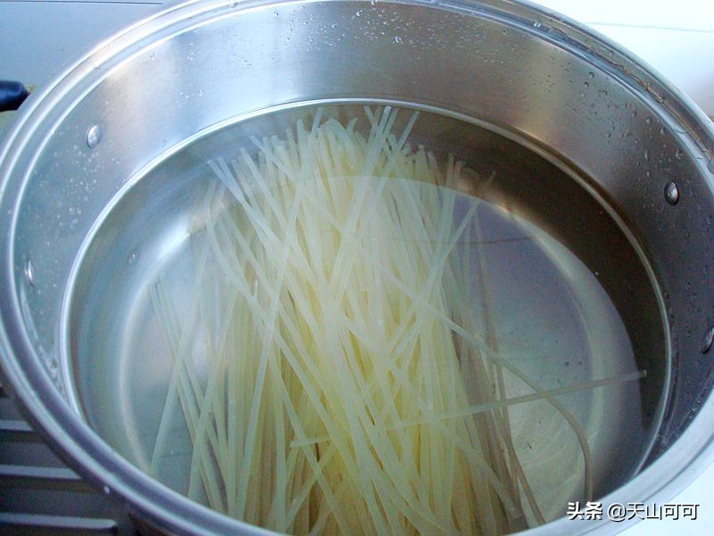做法:1、把干米粉洗洗,凉水下煮开以后,再继续煮10分钟左右,捞起来看看,没有硬芯即可捞起来,过凉水,这样米饭比较劲道,而且还要再次下锅炒,不可煮的太软了。