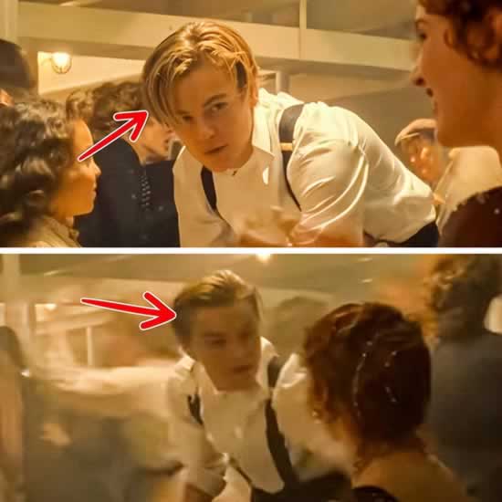 另一个奇怪的疏忽是杰克在三等舱的一个场景中的发型。在与小科拉跳完迷人的舞后,杰克回到了桌子旁,罗斯正忙忙地等着他,头发凌乱。然而,我们可以看到,紧接着,他的头发被几层凝胶和所有东西完美地梳理了。我们中的许多人也希望拥有在几秒钟内为头发造型的超能力。