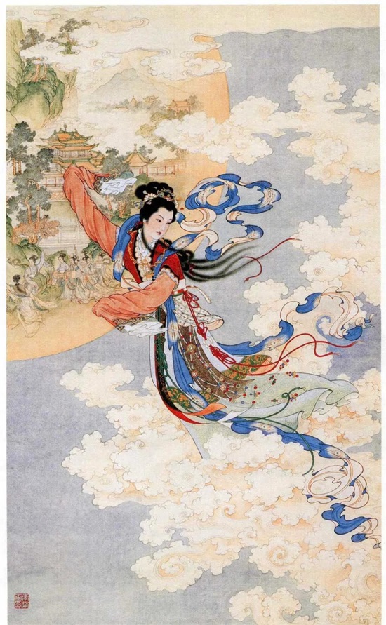 时间久之,嫦娥与同在月宫中的吴刚相交甚好,便祈求吴刚卖力伐树,玉兔捣药,以期早日练出灵药重返人间与夫君团聚。