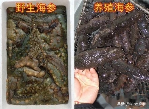 野生海参,光照少,生长周期长,肉质紧实有弹性,参体宽厚饱满,口感劲道,切口细腻、整齐。而圈养的海参生长周期短,长的快,肉质松软不紧实,无弹性。