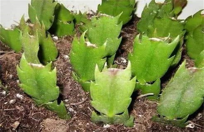 先将配制好的土壤装进花盆中,并将表层的土壤抚平,然后喷洒水雾,保持土面湿润,再把蟹爪兰插穗插进土壤中,入土深度为插穗长度的1/3左右,最后压实周围土壤,并再喷水一次。