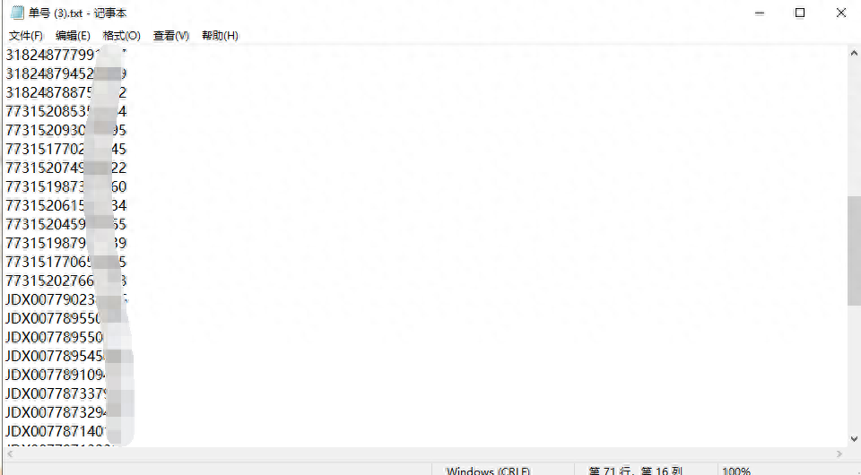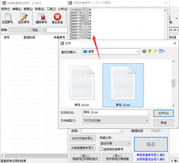 首先,将需要查询的快递单号,不论是哪家快递公司的,都存放在同一TXT文档中